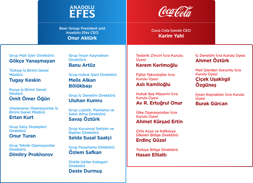 Anadolu Grubu’na 28 yıl önce katılan Sn. Burak Gürcan, Efes İçecek Grubu, Anadolu Bilişim Hizmetleri ve Anadolu Sağlık Merkezi'nde ERP projeleri ile Bilgi Sistemleri, Pazarlama Yönetimi ve İnsan Kaynakları Sistemleri alanlarında deneyim kazanarak artan sorumluluklar üstlenmiştir. Anadolu Grubunda Yetenek Yönetimi, Ödül ve Yan Haklar Yönetimi ve Çalışan Deneyimi Yönetimi'nden sorumlu olan Sn. Gürcan, İstanbul Teknik Üniversitesi Endüstri Mühendisliği Bölümü'nden yüksek lisans (2001) ve lisans (1996) derecelerine sahiptir. 1 Eylül 2024 itibarıyla CCI’da İnsan Kaynakları İcra Kurulu Üyesi görevini devralmıştır.