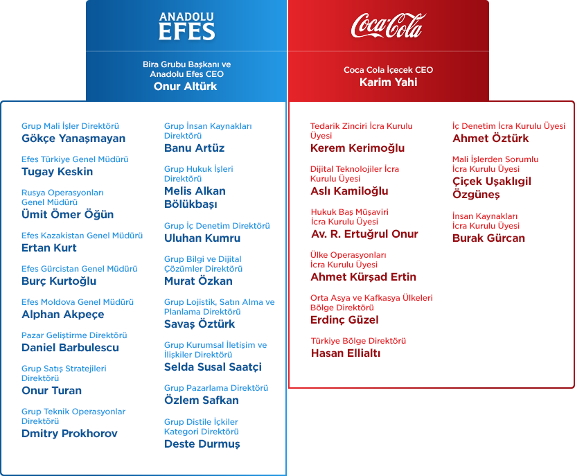 Anadolu Grubu’na 28 yıl önce katılan Sn. Burak Gürcan, Efes İçecek Grubu, Anadolu Bilişim Hizmetleri ve Anadolu Sağlık Merkezi'nde ERP projeleri ile Bilgi Sistemleri, Pazarlama Yönetimi ve İnsan Kaynakları Sistemleri alanlarında deneyim kazanarak artan sorumluluklar üstlenmiştir. Anadolu Grubunda Yetenek Yönetimi, Ödül ve Yan Haklar Yönetimi ve Çalışan Deneyimi Yönetimi'nden sorumlu olan Sn. Gürcan, İstanbul Teknik Üniversitesi Endüstri Mühendisliği Bölümü'nden yüksek lisans (2001) ve lisans (1996) derecelerine sahiptir. 1 Eylül 2024 itibarıyla CCI’da İnsan Kaynakları İcra Kurulu Üyesi görevini devralmıştır.